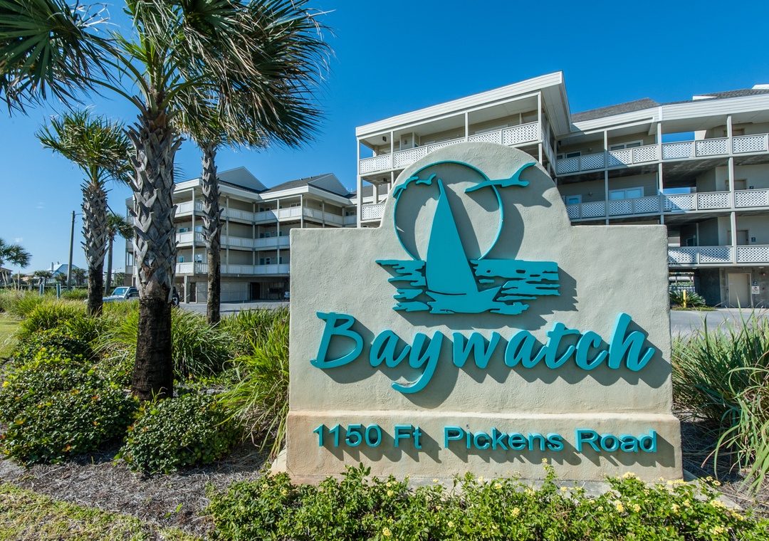 Baywatch is located on the sound side of Pensacola Beach towards Fort Pickens. Take a dip in the community pool, relax on the private bay beach, or wander down the community dock. The Gulf of Mexico is across the street with the beach access a short stroll away. You’ll love staying at Baywatch for your next beach vacation.