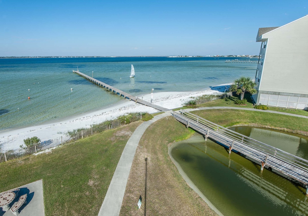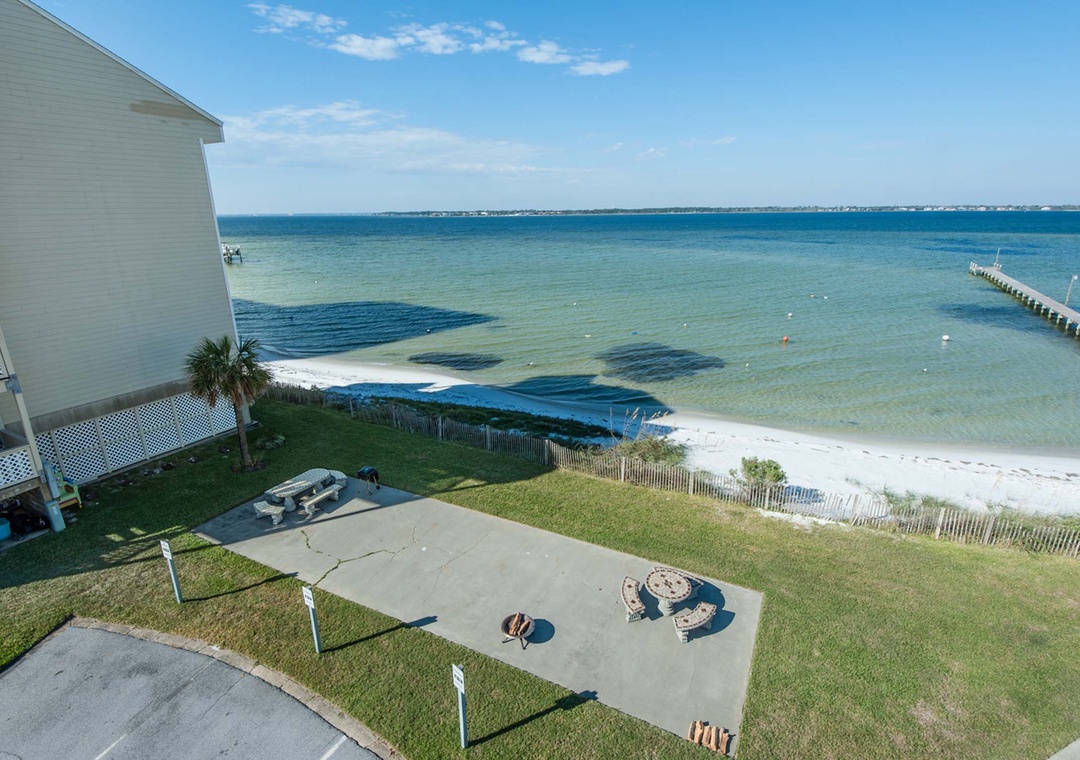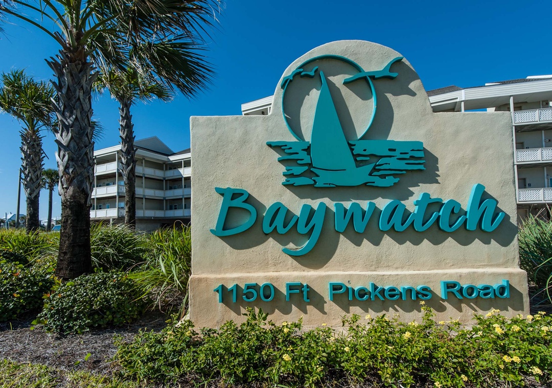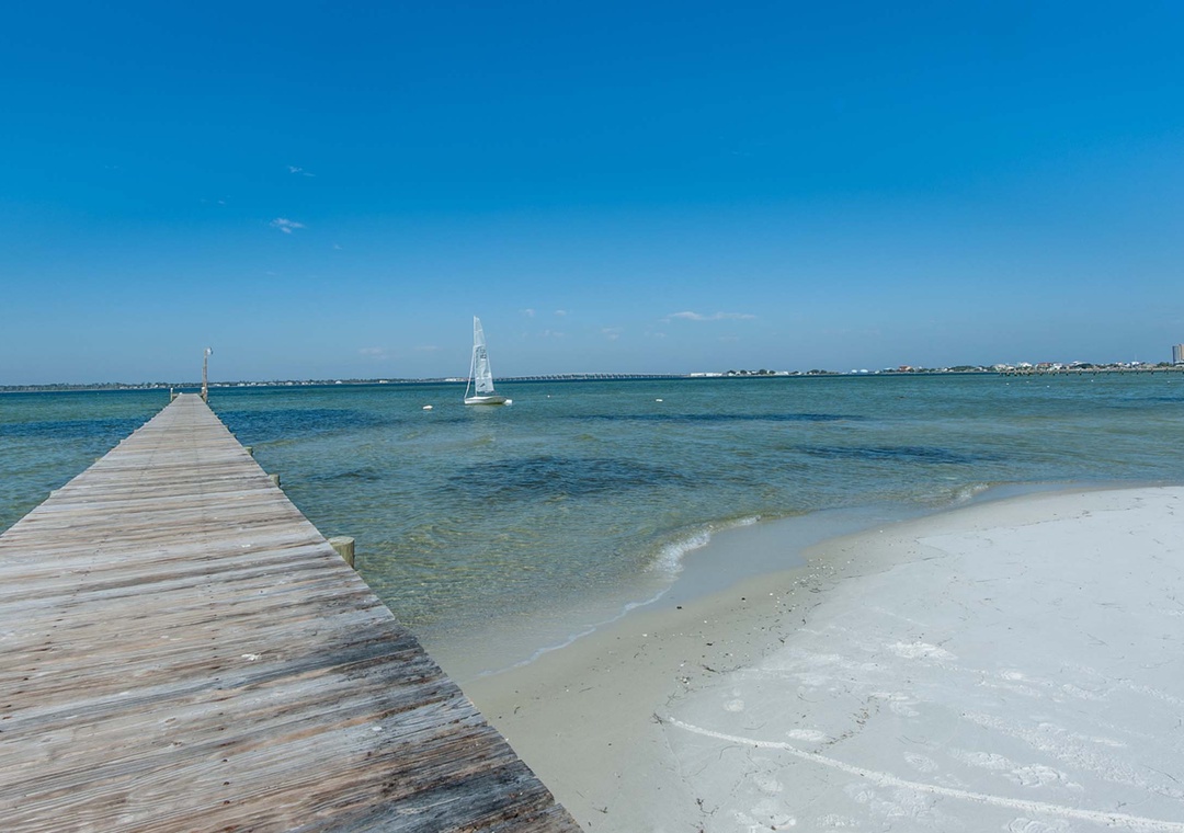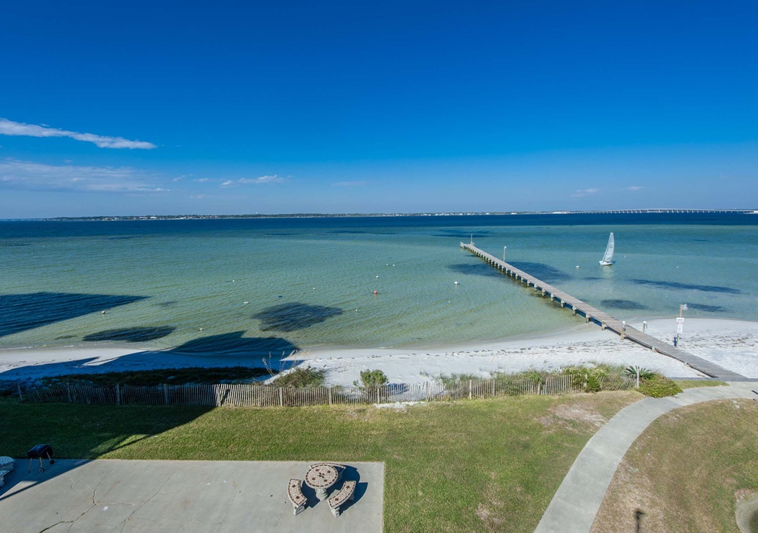 Baywatch is located on the sound side of Pensacola Beach towards Fort Pickens. Take a dip in the community pool, relax on the private bay beach, or wander down the community dock. The Gulf of Mexico is across the street, with the beach access a short stroll away. You’ll love staying at Baywatch for your next beach vacation.