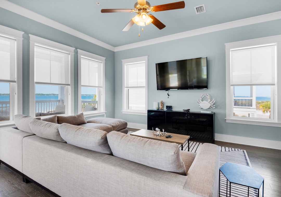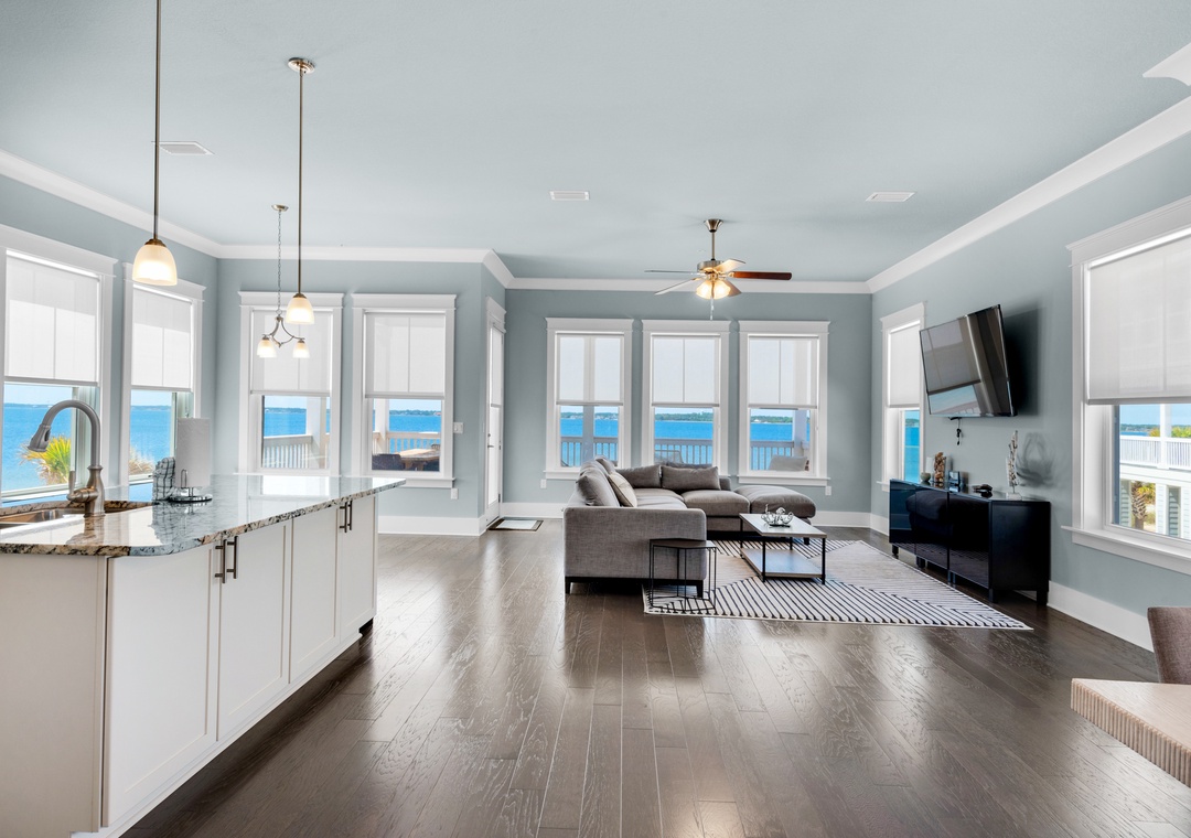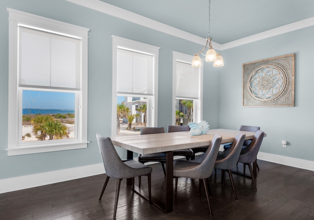 Escape to Blue Skye, your perfect family-friendly getaway nestled in the beautiful gated community of By the Sea on Navarre Beach. This spacious and stunning 3-story, 4-bedroom, 3.5-bathroom retreat boasts 2,800 square feet of coastal comfort, featuring a bright and airy layout with multiple balconies offering breathtaking views of the Santa Rosa Sound. Inside, enjoy a beautifully appointed kitchen, a welcoming dining area, and comfortable sleeping arrangements: a king in the master, queens in two guest rooms, and twin-over-twin bunks in the fourth—each with its own dedicated bathroom. With covered carport parking and just moments from the white sugar sands, Blue Skye is your dream home away from home on the Gulf.