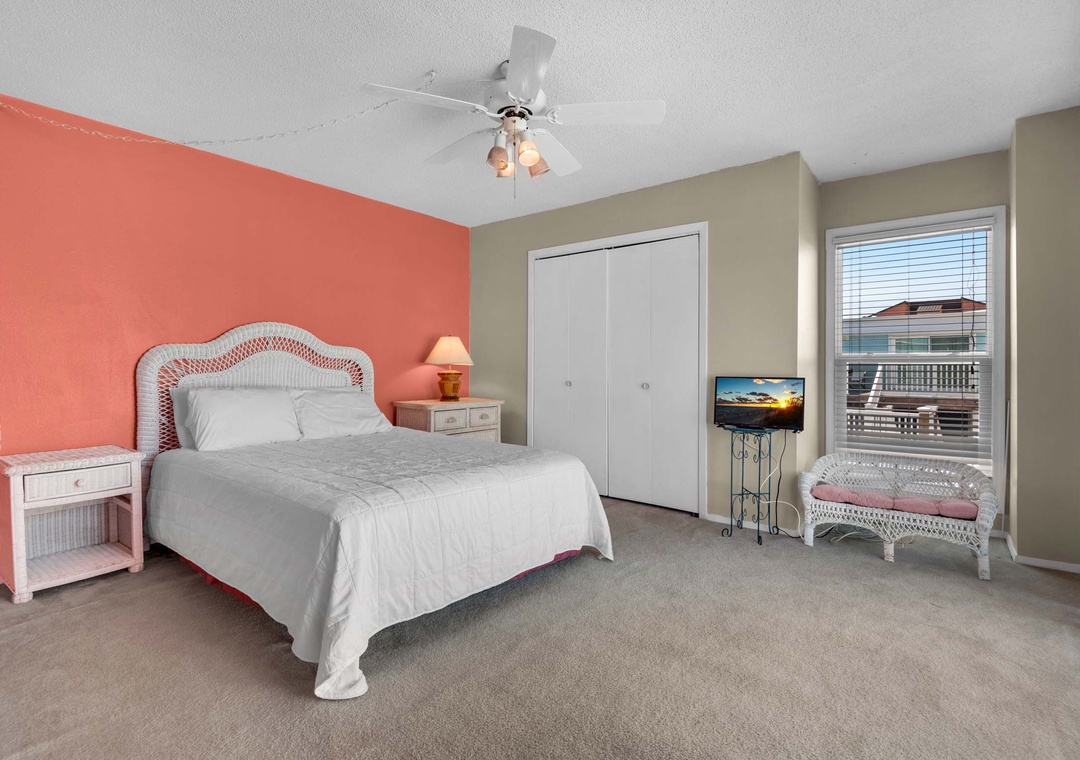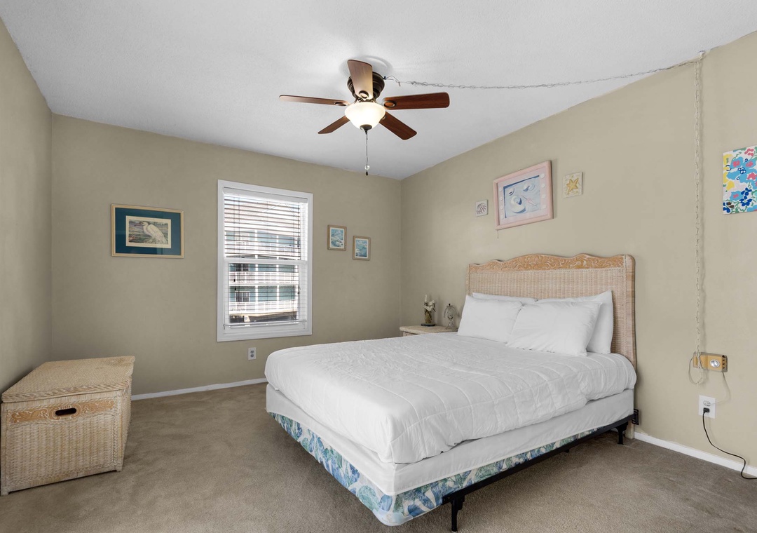 Welcome to Boardwalk F1. This lovely two-bedroom, two and 1/2 bath unit sits directly on the bay with sweeping views that dreams are made of. The living and dining areas are on the first level above the parking. The living area has a generous flatscreen tv and opens to the balcony. The fully equipped kitchen, large dining table, half bath, and washer/dryer are also on this level. You’ll love being able to step outside on the balcony to watch the kids play on the shore. On the upper level are two bedrooms and two bathrooms. The master has a queen bed and overlooks the bay with a large balcony made for romantic evenings. The guest bedroom has a Queen bed. All rooms are light and bright. Find out why families return to Boardwalk F1 year after year.