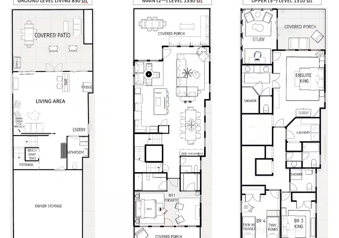 * Large Ground Level Living Area for Indoor/Outdoor Living and Dining Waterside