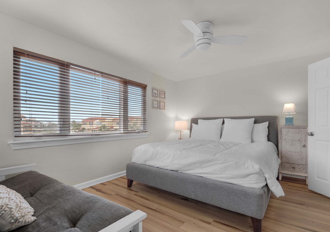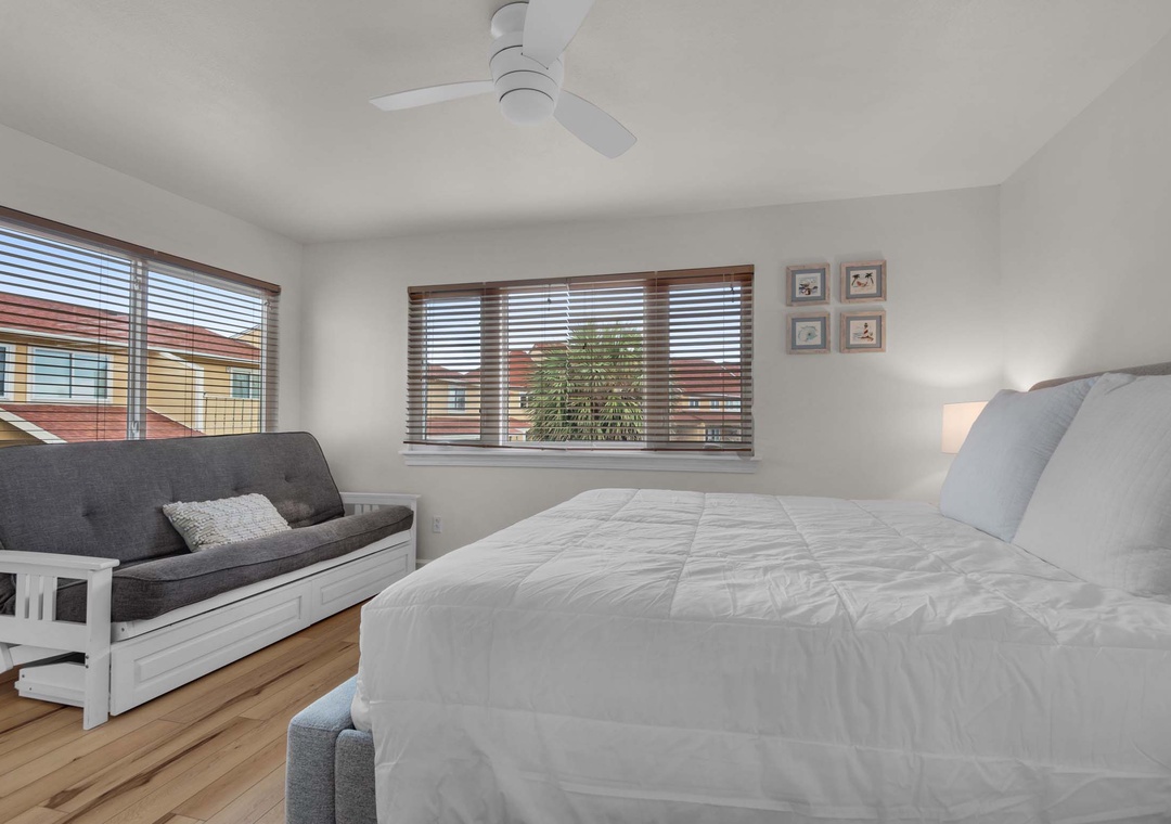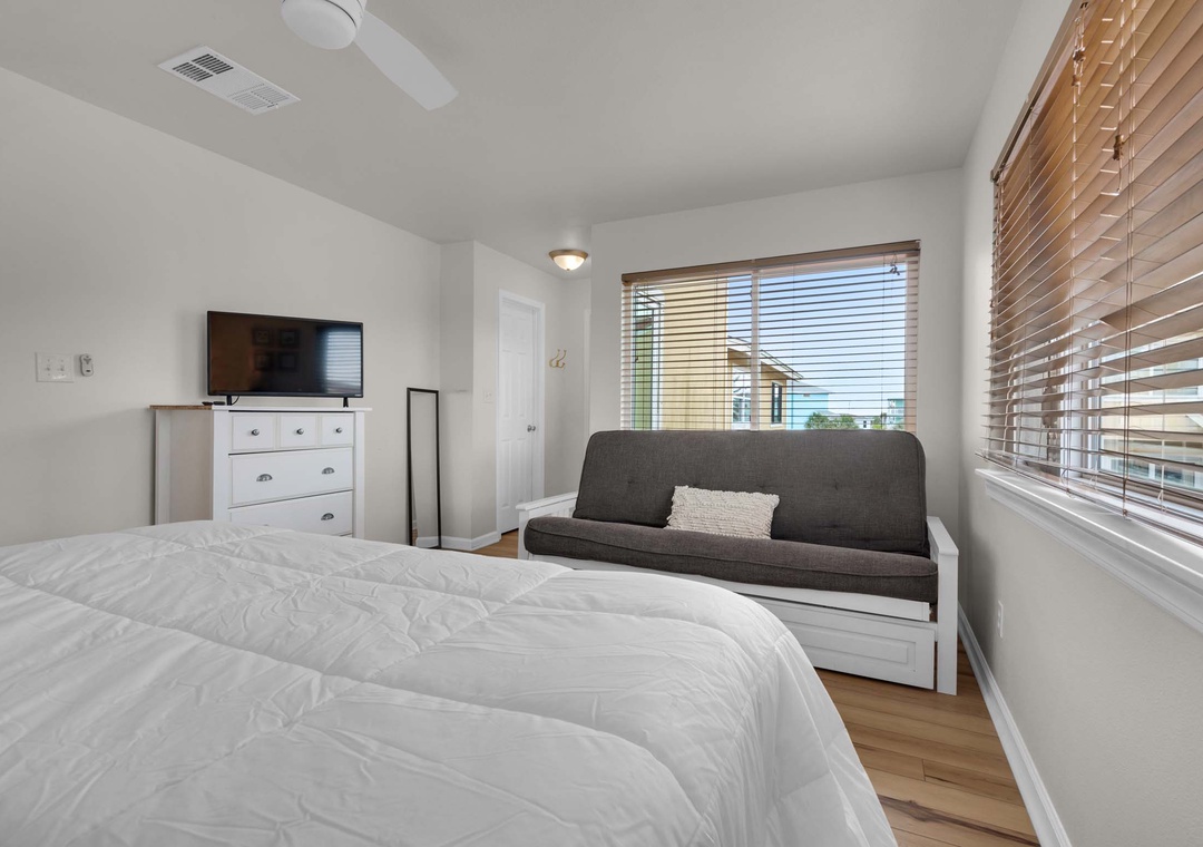 Primary Bedroom: King and Full Futon