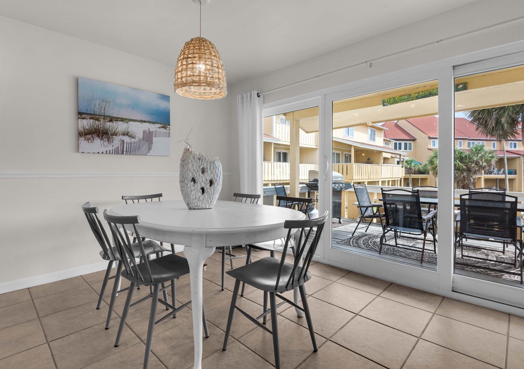 We really enjoyed our stay at the D3 townhouse. The location is great. Right next to the pool, a 2 min. walk to the private crossover to the beach and far enough from the crowds at the pier area to have an uncrowded, relaxing beach day. Yet you're only a 2 mile drive to great restaurants and shops. The unit itself had plenty of room for our 6 adults, with room for more. We definitely would stay again!! The only advice to future guests would be to bring some seat cushions as the metal dining room chairs are a little uncomfortable if you sit for awhile playing games or cards.- Posted: 6/29/2025