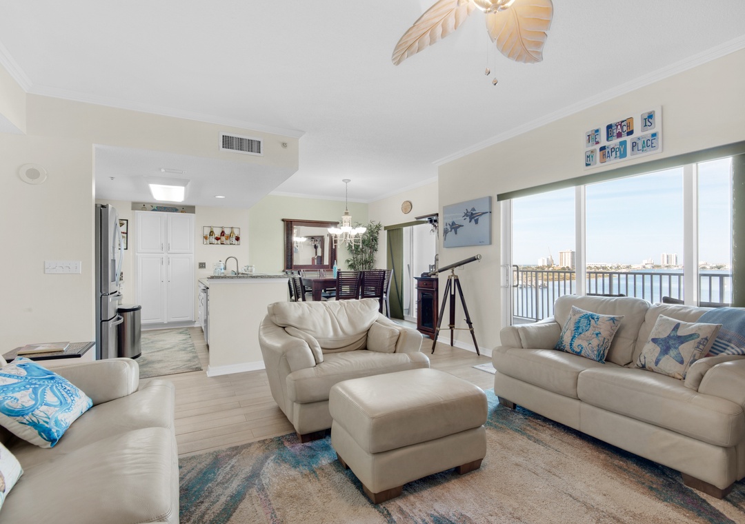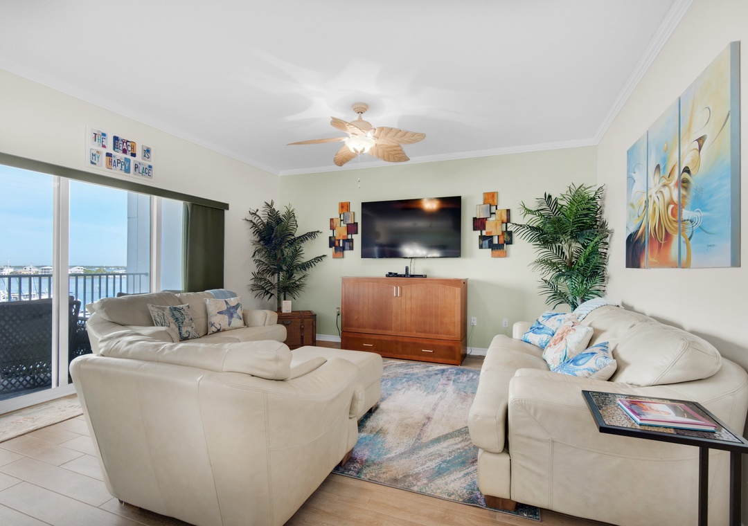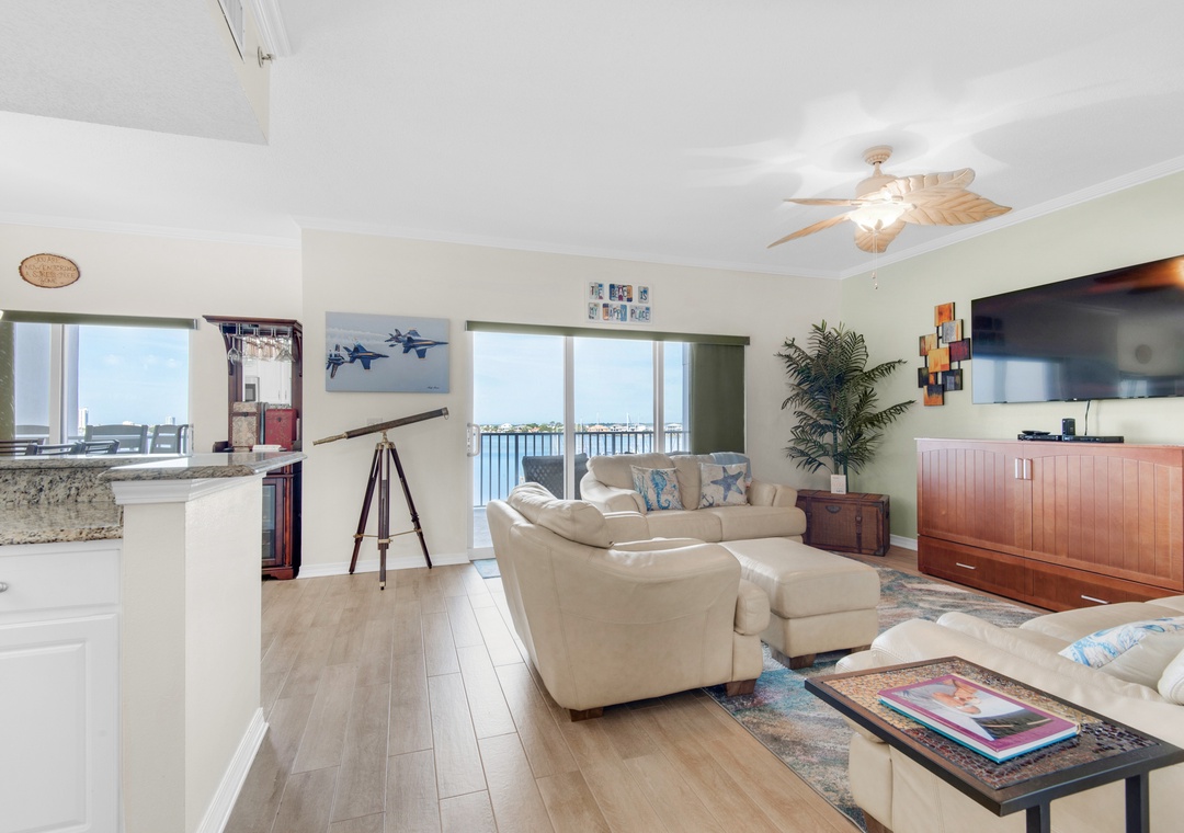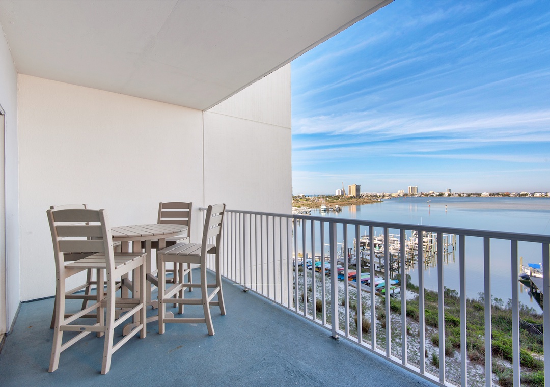 Welcome to South Harbour 4E of Pensacola Beach! This is a 2 bedroom, 2 bathroom overlooking the beautiful Pensacola sound. The master suite offers a queen bed with an ensuite and the guest bedroom has a queen bed with an additional bathroom in the hallway. This unit allows for 4 people to sleep comfortably. Relax out on the spacious balcony and soak up the stunning views and enjoy a meal at the large dining table with the family. Feel free to make yourself at home in this beautiful property and don't forget to come back and see us at South Harbour 4E!