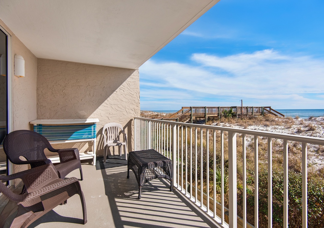 Rating Details: The property manager was very helpful. The vacation rental was spotless. I was very happy with the location. I was very satisfied with the condition of the vacation rental. Overall, I recommend this vacation rental. Reviewer Comments: We had an amazing time and I am certain it wouldn't have been as perfect if we hadn't chosen to stay in this condo. The location is RIGHT on the water - you literally walk down the steps to the boardwalk. We also lucked out and go the bedroom with the balcony overlooking the water. The beach is also private which we really appreciated over the weekend when the public beaches were packed. The condo was in perfect condition and was pretty baby proofed - we didn't have to worry about much. The kitchen was fully stocked with cooking pans and utensils and having a dishwasher was an extra bonus. As for places nearby, Peg Leg Pete's was a short walk away and the food was great. We had two toddlers with us, and the play area was great while we waited for our table. There was also a little convenience store down the road, Tom's that was open late and good for last minute things. We stopped on our drive in to get necessities before doing a big food shop the next day at Publix. HIGHLY RECOMMEND. If we ever travel to Pensacola again I will be looking for this condo!- Reviewed On: 5/24/2016