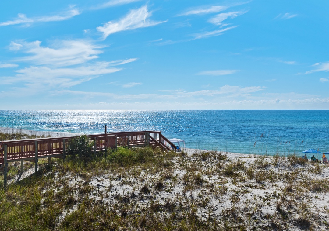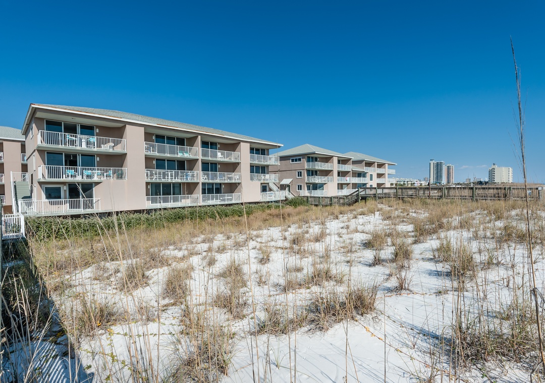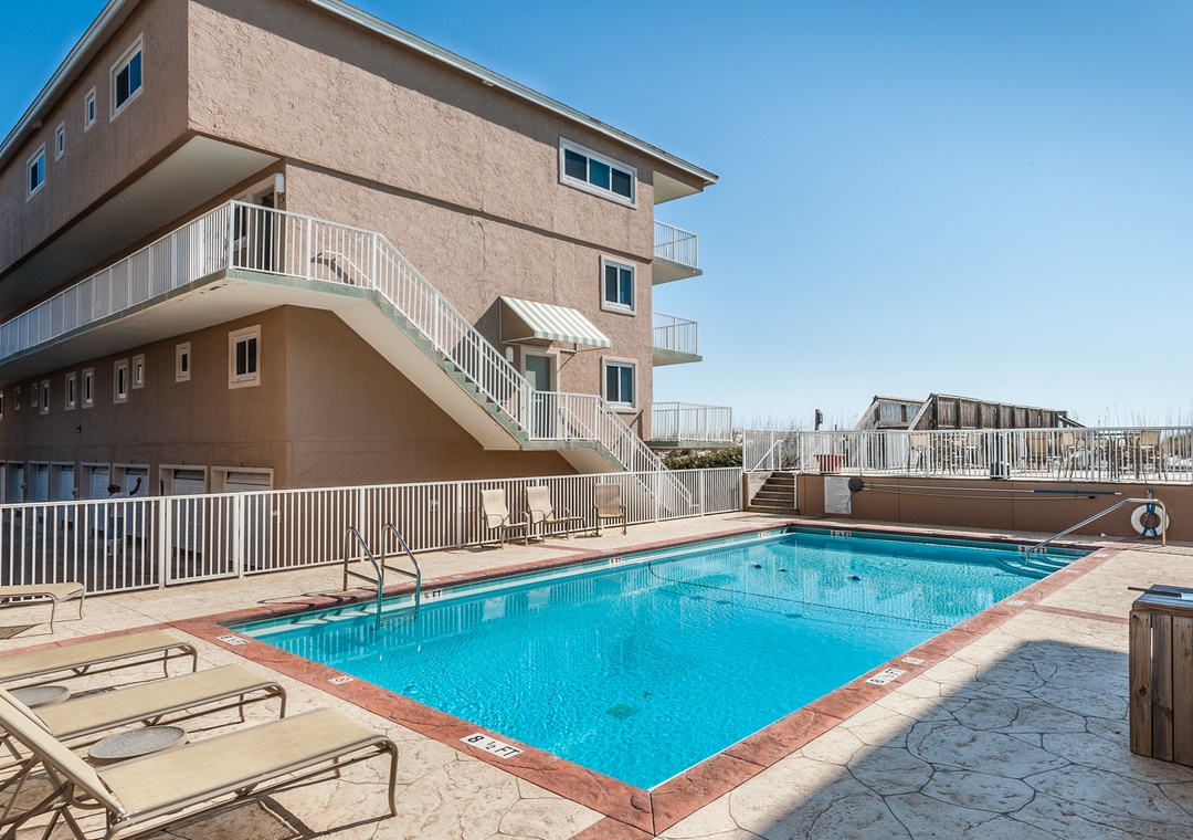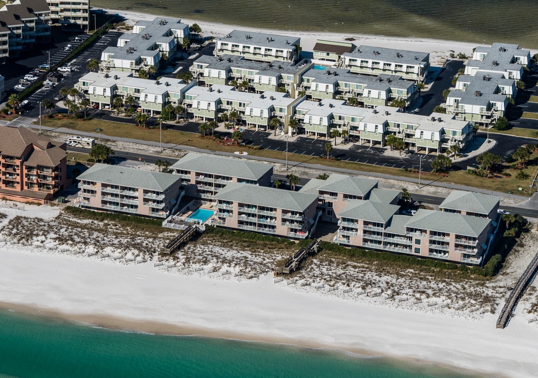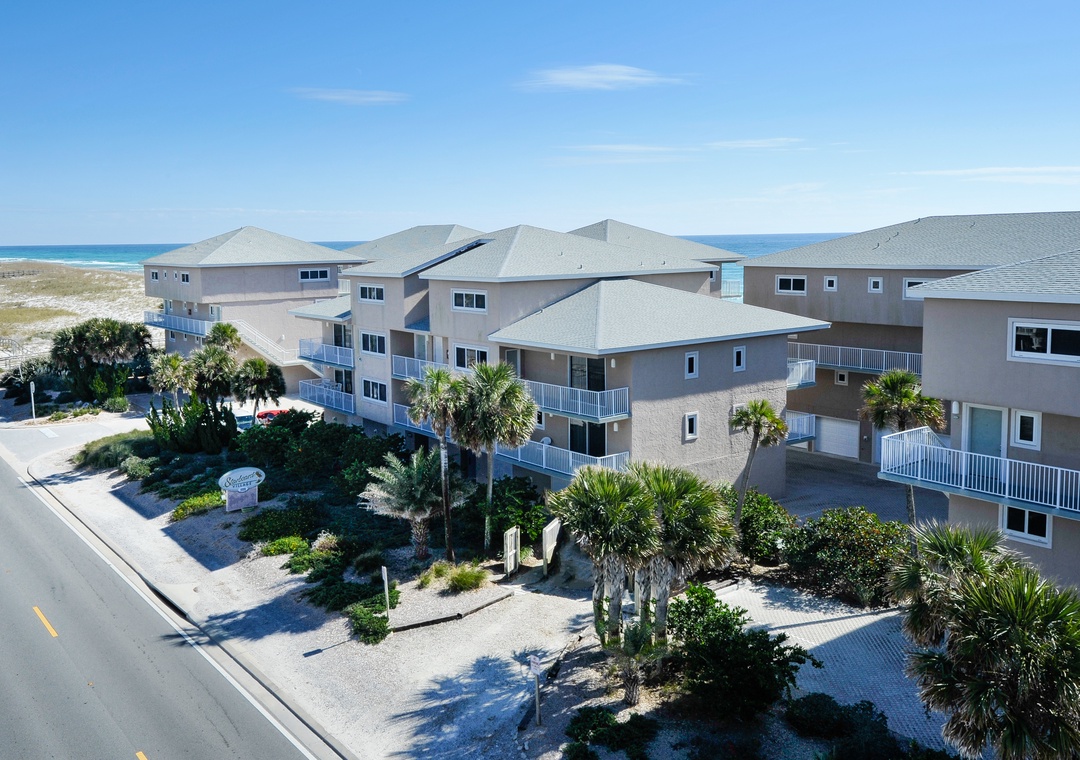 Starboard Village is a low-rise beach front complex situated on the dune line of the Gulf of Mexico in Pensacola Beach and has only 33 individual units. The ground floor has a one or two car garage. There is a community pool and sundeck centrally located on the property near the gulf. Enjoy the paved bike trails, hop on the seasonal beach trolley or the Pensacola Ferry System to explore. You will love being beach front and close to Peg Leg Pete’s seafood restaurant. Discover why guests return to Starboard Village year after year!