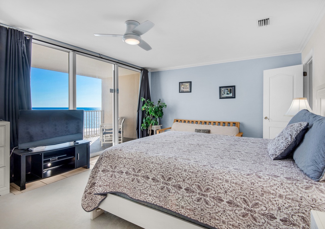 Starboard Village 622 is a lovely two-bedroom, two-and-a-half bath condo that sits directly on Pensacola Beach. When you enter this beautiful condo, you’ll notice the tile flooring, gulf views, fireplace, and flat-screen TV in the living room. The glass sliders open out to the beachfront balcony! The kitchen is open to the living room and is light and bright. Enjoys the views of the beach from the dining table that seats 6 and additional seating for 4 at the kitchen bar top. The master bedroom offers a queen bed, beautiful views from the gulf front balcony, and en-suite bathroom with jetted tub and shower. The guest bedroom offers a full bed, two twin beds, and an attached bath with a tub/shower combo. This property sleeps up to 6 guests. Make your next vacation memory at Starboard Village 622!
