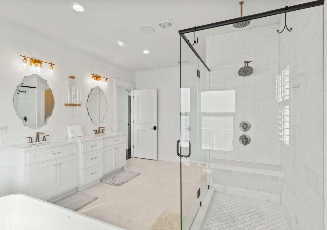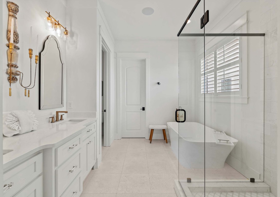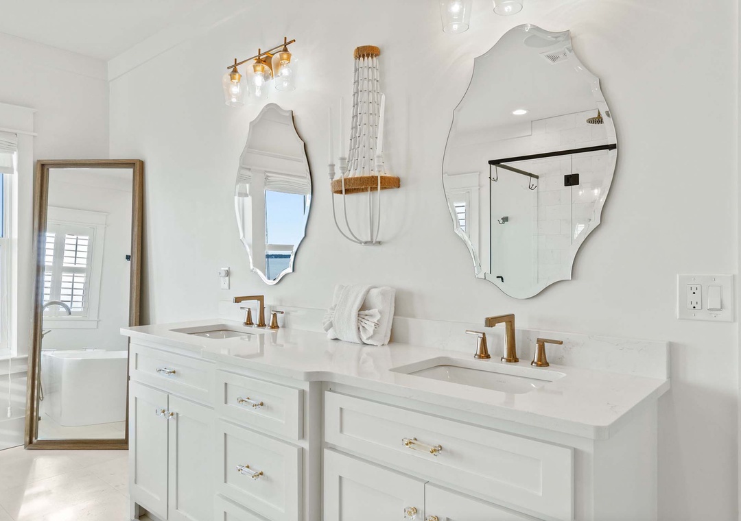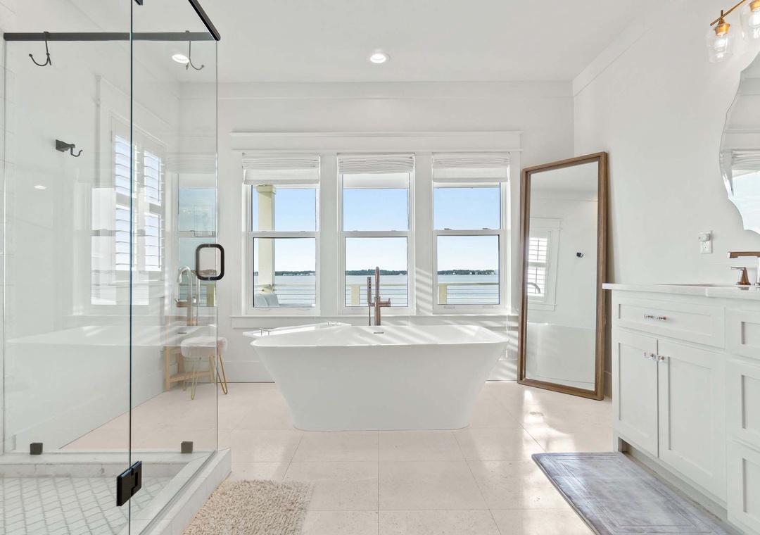 • Master Suite 1: King bed, spa-style en-suite bath, soaking tub, private balcony & water views