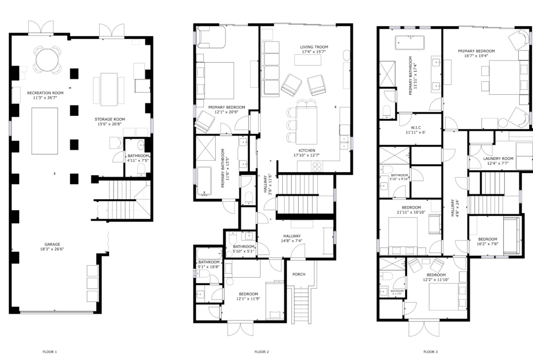 • Guest Bedroom 3: Queen bed, private en-suite bath