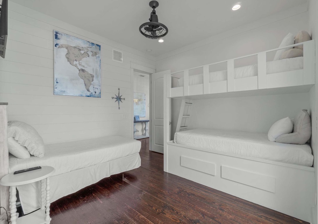 • Guest Bedroom 4: Twin-over-Twin Bunk + Twin Bed, en-suite bath – kid-friendly space