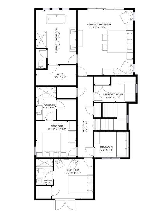 • Guest Bedroom 5: Full bed, private en-suite bath