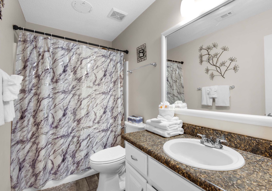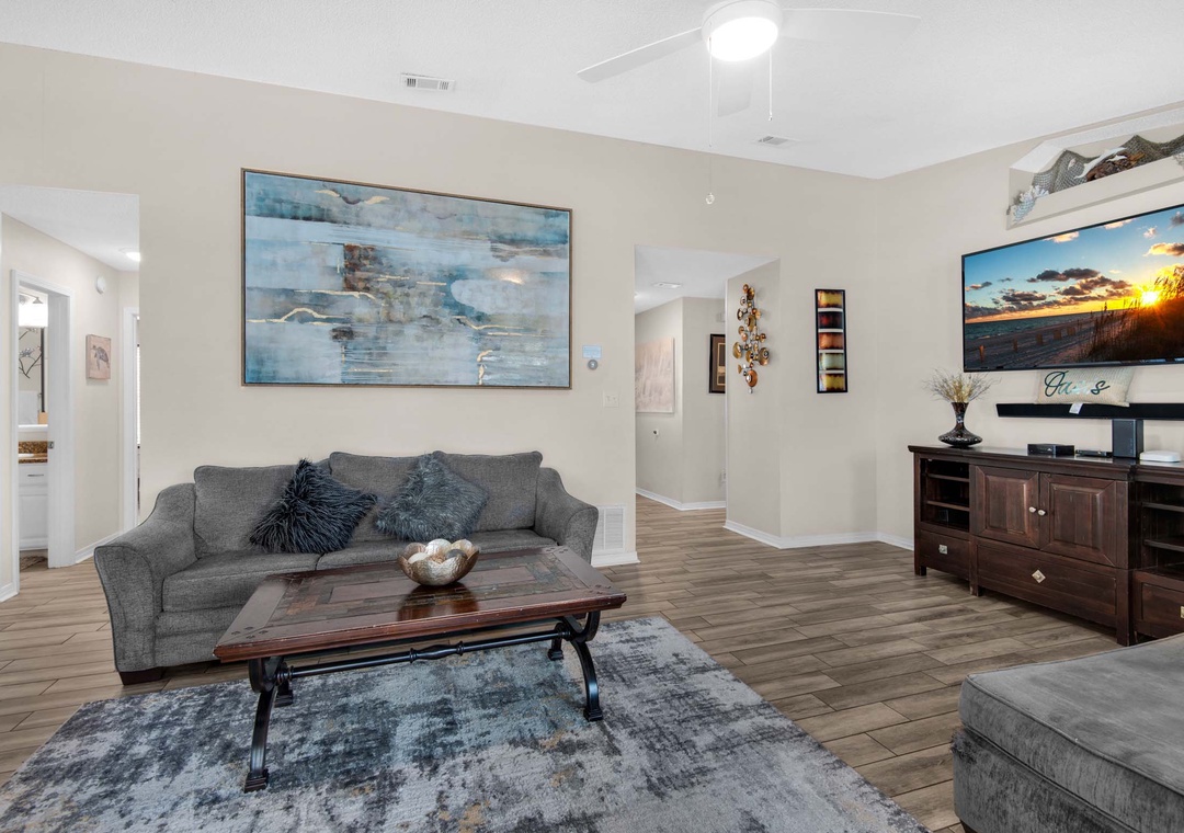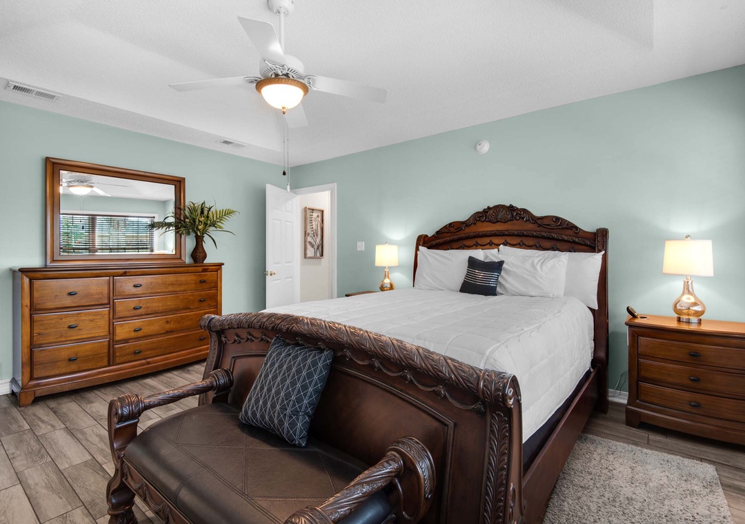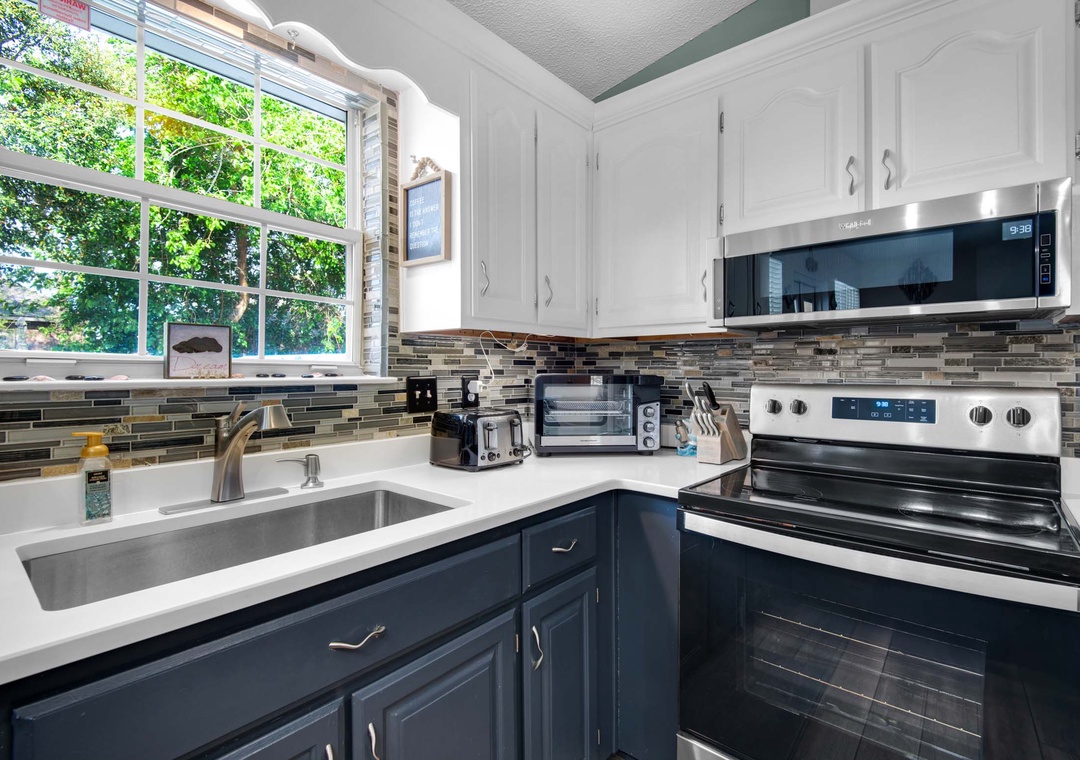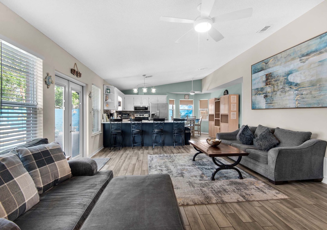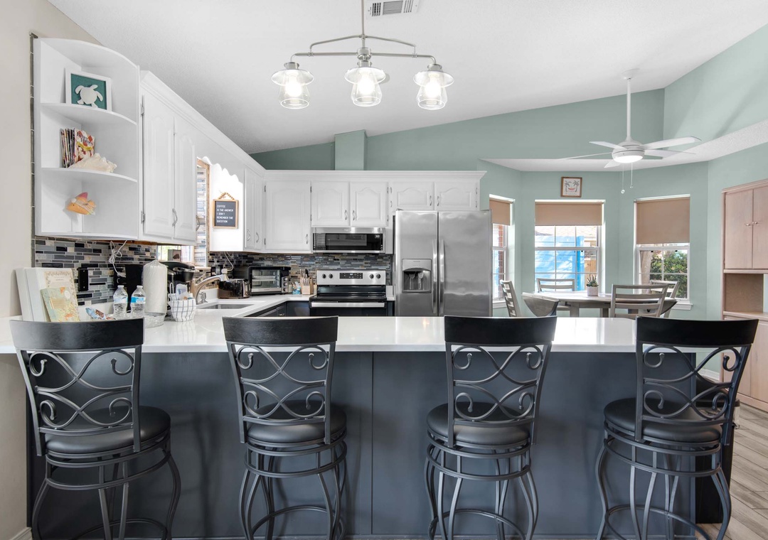 Welcome to Village Oasis! This gorgeous home boasts a well-equipped Kitchen and has plenty of room to take care of your family meals. The Living room offers plenty of seating for all and includes a new sofa bed. The Master Bedroom has a comfortable Queen bed with an En Suite Bathroom, the first Guest bedroom has a Queen bed, and the other Guest bedroom has a Full bed. There is 2nd bathroom conveniently located for easy guest access. Step into the romantic ambiance of the private back yard and take a dip in the pool. Enjoy the custom Tiki bar or simply relax in one of the comfy lawn chairs with a cool beverage in hand. With the world-famous beaches only 15 minutes away, you can play in the Emerald green waters of the Gulf of Mexico all day then come back to your private oasis and start making plans for your next stay!